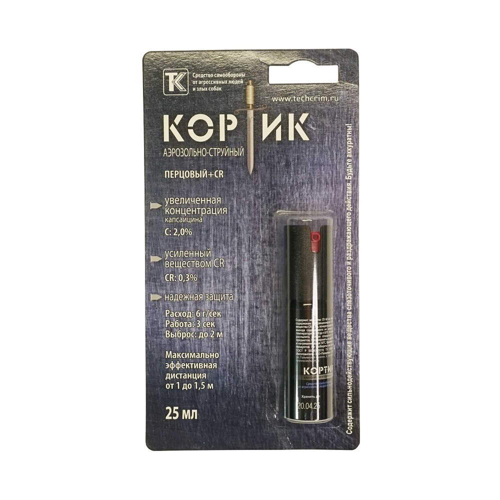 Газовый баллончик «Кортик», 25 мл – это новинка на российском рынке средств самозащиты. Сильнодействующий, эффективный и компактный, баллончик «Кортик» является надежным средством для защиты от нападения людей и животных. Производитель – известная компания «Техкрим». Важное достоинство данного баллончика – использование здесь увеличенной концентрации ОС (вытяжки жгучего перца) и CR – боевого отравляющего вещества, используемого в спецсредствах сотрудников МВД.