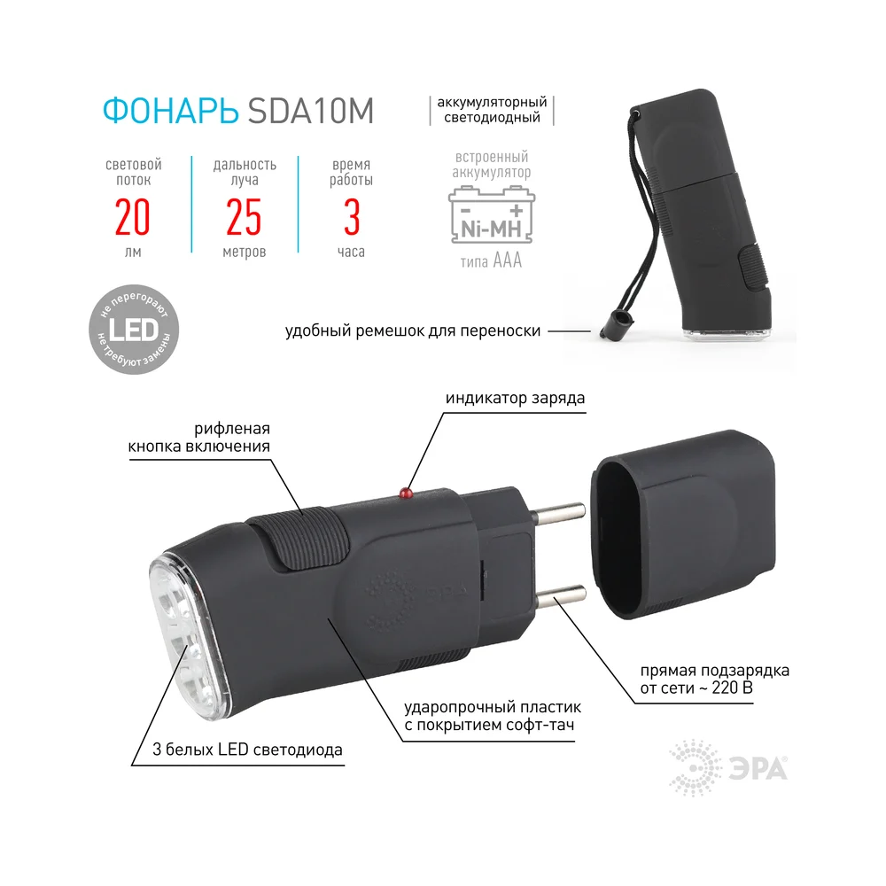 Фонарь ручной Эра SDA10M купить в интернет-магазине Рыболов. Доставка по России и Беларуси. Для Вас мы работаем круглосуточно.