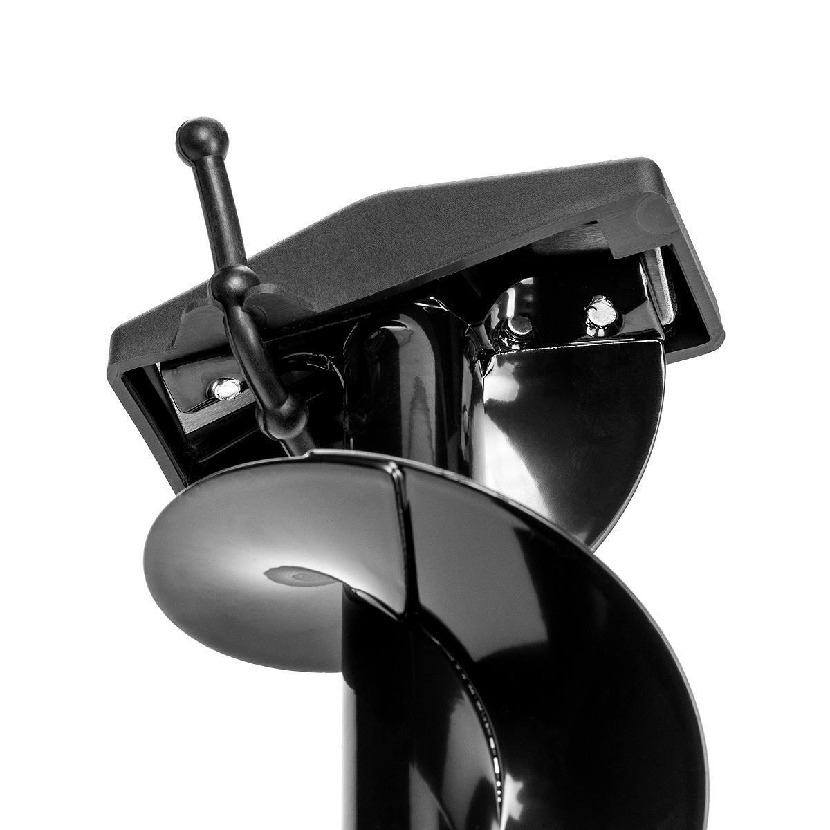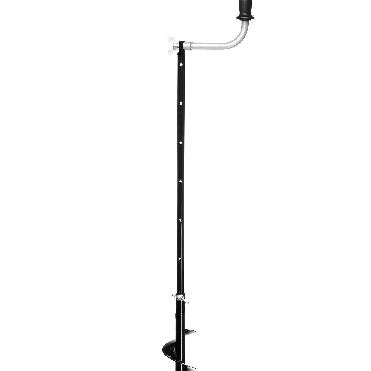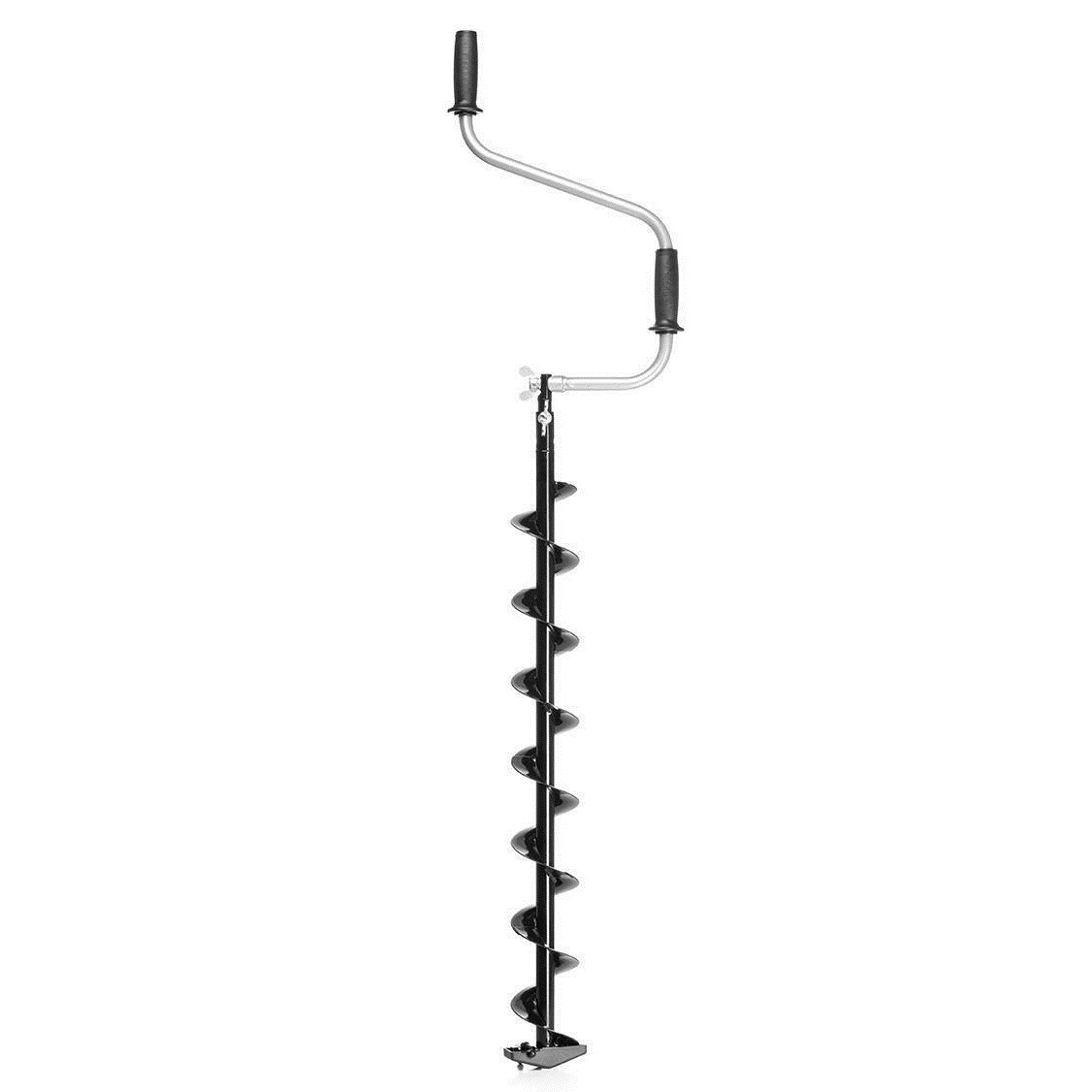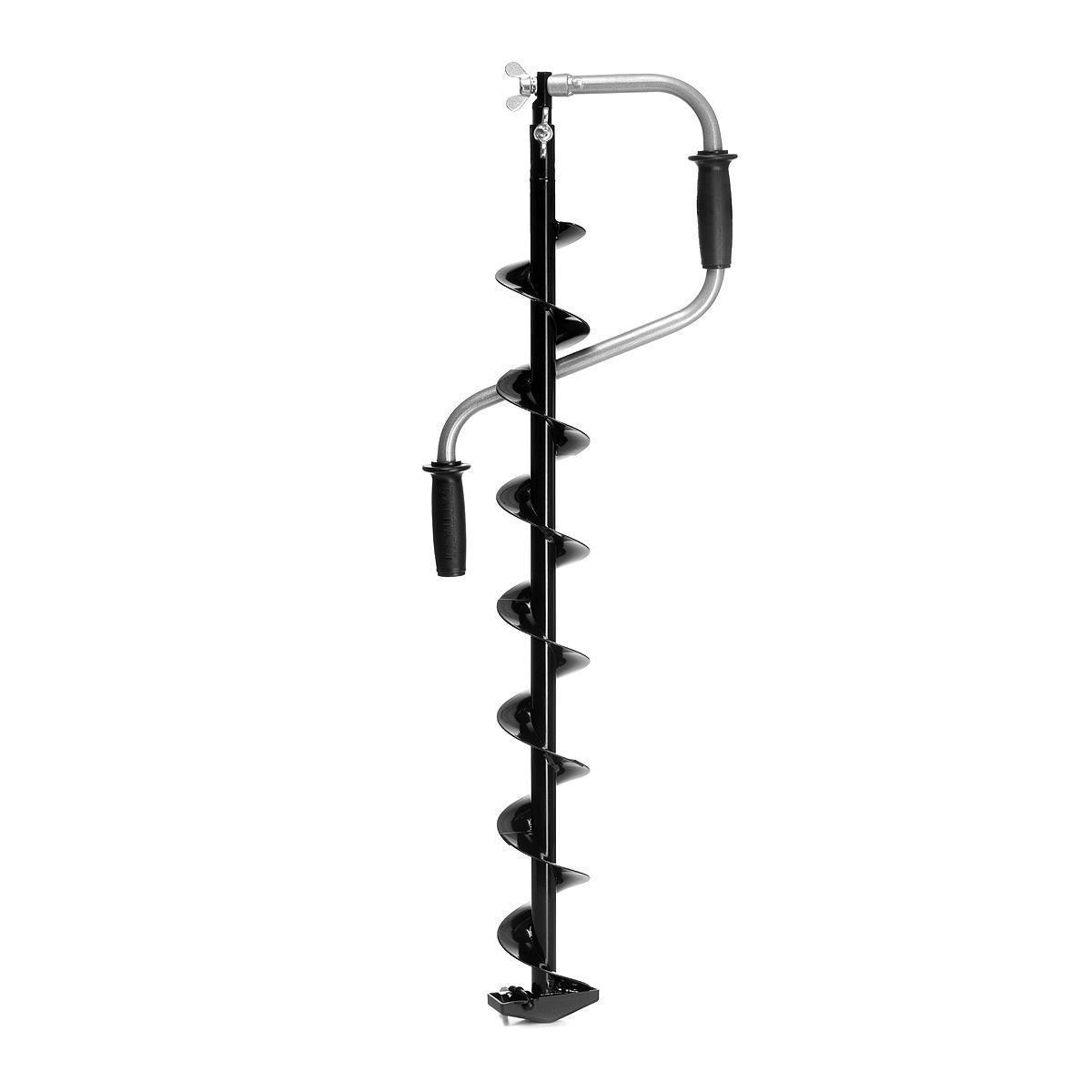 Такое расположение рукояток позволяет вращать ледобур одновременно двумя руками, тем самым увеличивая скорость бурения лунок во льду. В свою очередь телескопическая вставка-удлинитель комфортно бурить лед, подстраивая ледобур под рост рыболова. Вдобавок возможно ступенчато увеличивать глубину бурения почти до полутора метров. Штанга-удлинитель покрашена полимерной порошковой краской. Удобные ручки — прочный каркас из жесткой «теплой» пластмассы покрыт мягким пластиком, остающимся приятным на ощупь к слову сказать даже при сильных морозах. Шаг витков шнека увеличен на 10% по сравнению с классическими ледобурами. Это обеспечивает более быстрое освобождение лунки от шуги, снижает усилие бурения, а также предотвращает заклинивание шнека. Ледобур покрыт полимерной порошковой краской черного цвета, являющейся бесспорно одной из лучших по механической стойкости. Высочайший уровень контроля качества — при изготовлении каждый ледобур проходит полный контроль по более чем пятидесяти параметрам качества.