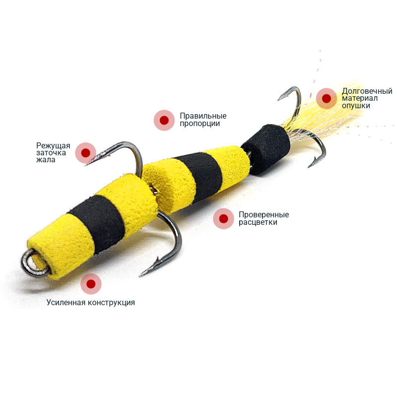 Долговечная. Мягкий материал тела служит очень долго, и мы специально используем такой мягкий. На одну приманку можно поймать и 100, и 200 судаков и приманка будет целой. Если использовать более жесткий материал, он будет крошиться от зубов хищника, лопаться, и вываливаться кусками