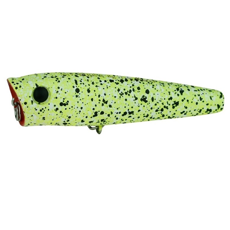 Мини поппер для крупной рыбы. Так можно без тени сомнения охарактеризовать эту приманку. На наш взгляд это один из самых удачных попперов. При проводке поппер издав характерный звук, слегка подныривает и затем медленно всплывает, замирая на поверхности. В этот момент и следует поклевка. Поппер отгружен так что, занимая в воде почти вертикальное положение, лишь носовой частью торчит из воды. Отсюда и столь результативная игра, которую дополняет оперение на тройнике.