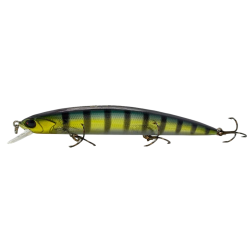 VERSUS — 130 мм воблер, который обладает очень хорошей линейной игрой со средней амплитудой. Кроме всего прочего он имеет балансировку с диферентом на нос. И вдобавок нейтральную плавучесть. Это безусловно создает очень хорошие предпосылки для рывковой техники проводки. В теле воблера применена новая система балансировки с помощью магнитного элемента, но с прямоугольным сечением. Такая система позволяет одновременно обеспечить дальний и безусловно точный заброс. А также оптимальный баланс для твичинга и минимальный уровень шума работы системы балансировки. Это несомненно отличный выбор приманки для ловли щуки.